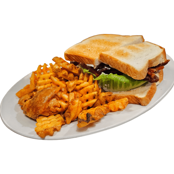 Oven roasted turkey breast, bacon, lettuce, tomato, and mayo layered on white toast with American cheese
