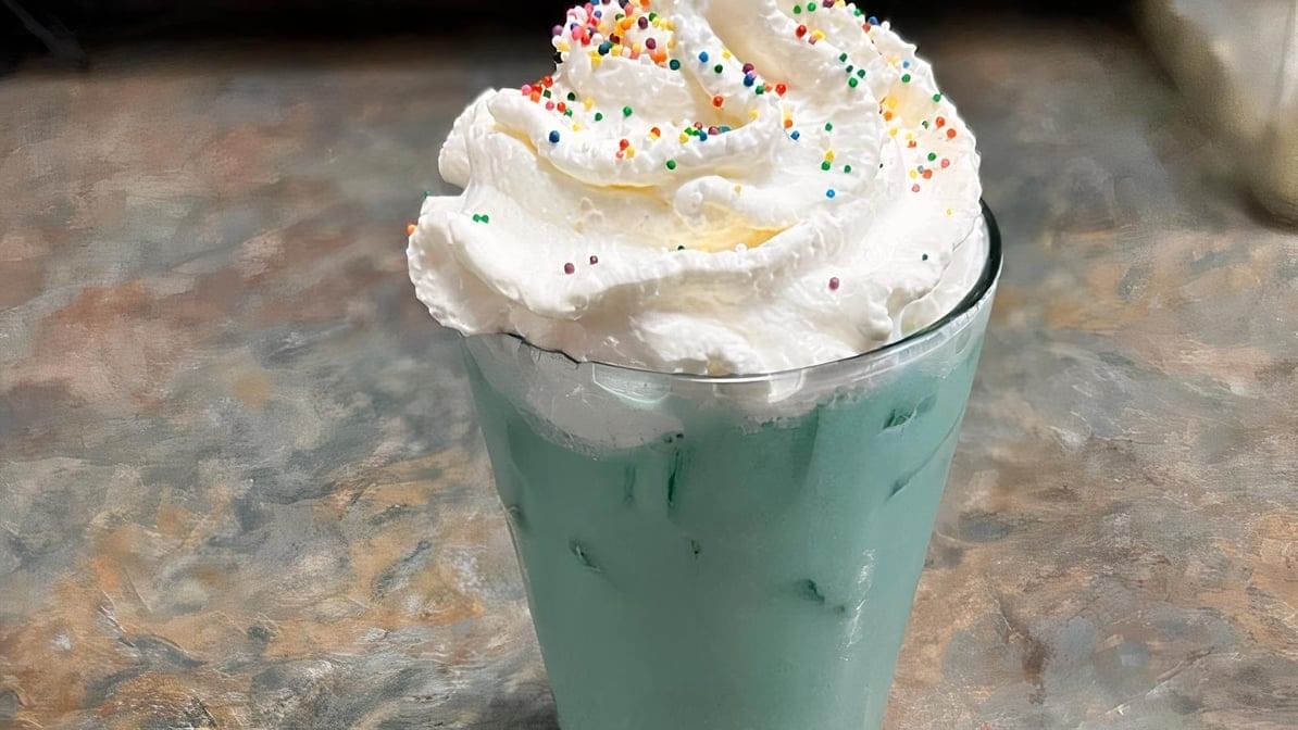 Red bull with green apple, blue raspberry and cream